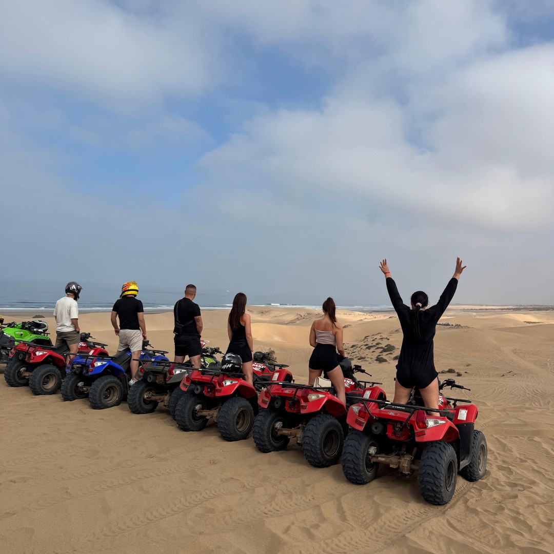 Quad 1h dans le désert, plage libre, promenade de la marina. Tajine poisson au port à 40 MAD.