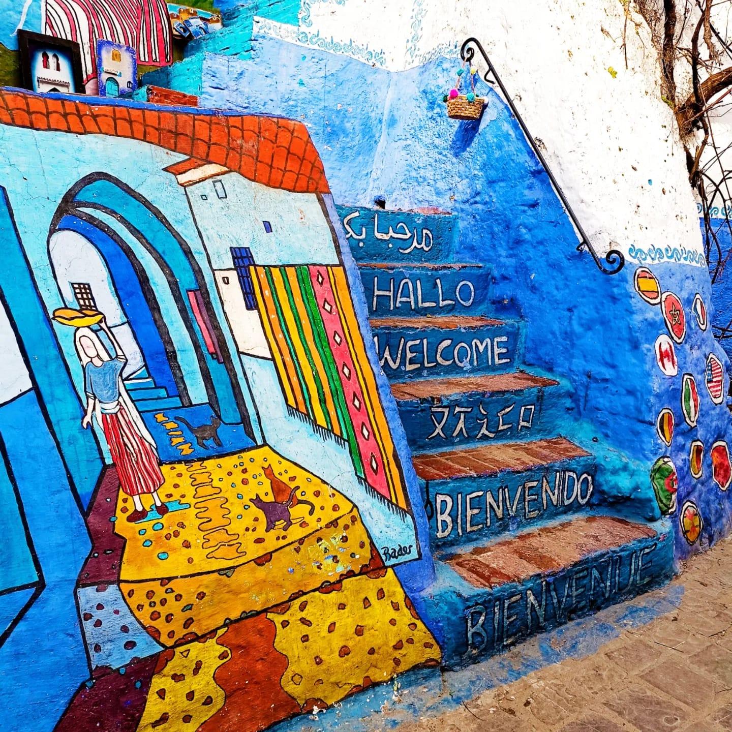 Arrivée en début d'après-midi à Chefchaouen. La ville est construite dans un vallon entre deux sommets du Rif, le djebel El Kelaa et le djebel Meggou, qui forment un décor naturel spectaculaire. L'après-midi est consacré à la découverte de la médina. Les ruelles sont peintes dans une infinité de nuances de bleu, du cyan vif au bleu lavande en passant par l'indigo profond. La place Outa El Hamam est le coeur de la ville, avec sa Kasbah du XVe siècle transformée en musée ethnographique (entrée 60 MAD) et ses cafés-terrasses ombragés. Les souks de Chefchaouen vendent de l'artisanat rifain : couvertures tissées à rayures, fromages de chèvre, djellabas en laine, savons naturels.