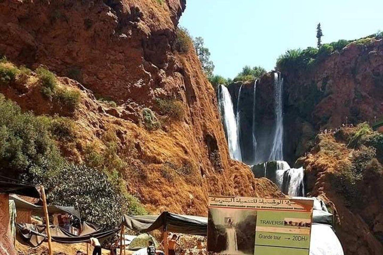 Le trajet. Depart de Marrakech le matin (8h-9h). La route traverse la plaine du Haouz, passe par Demnate et grimpe vers les contreforts du Moyen Atlas. Le paysage evolue progressivement du semi-aride vers le vert. Les derniers kilometres serpentent entre les oliveraies. Duree : environ 2h30 a 3h.
