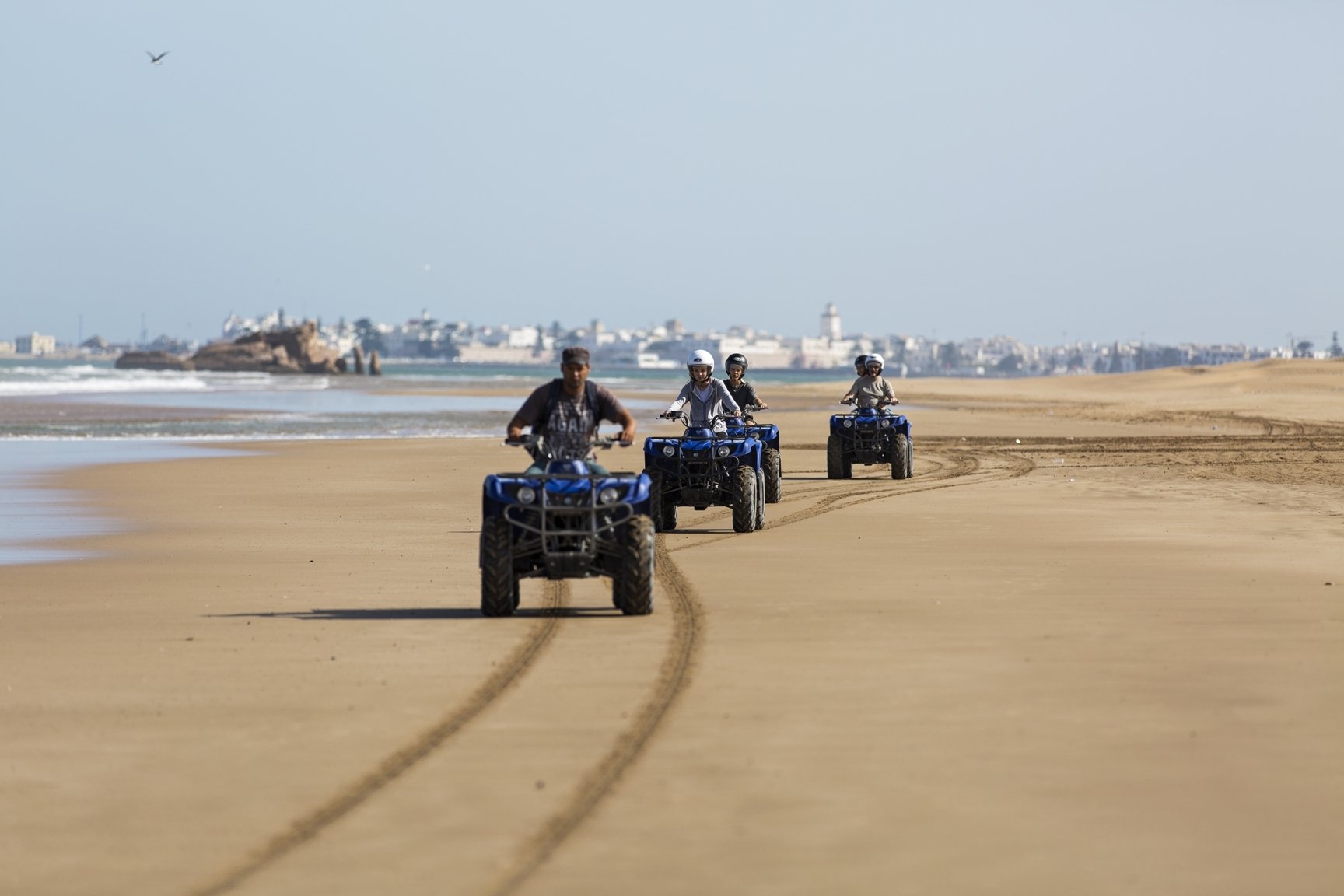 Le prix inclut le quad, le casque, les lunettes et le guide. Pas de transfert hotel dans la formule de base — le point de depart est accessible a pied ou en taxi depuis le centre d'Essaouira.