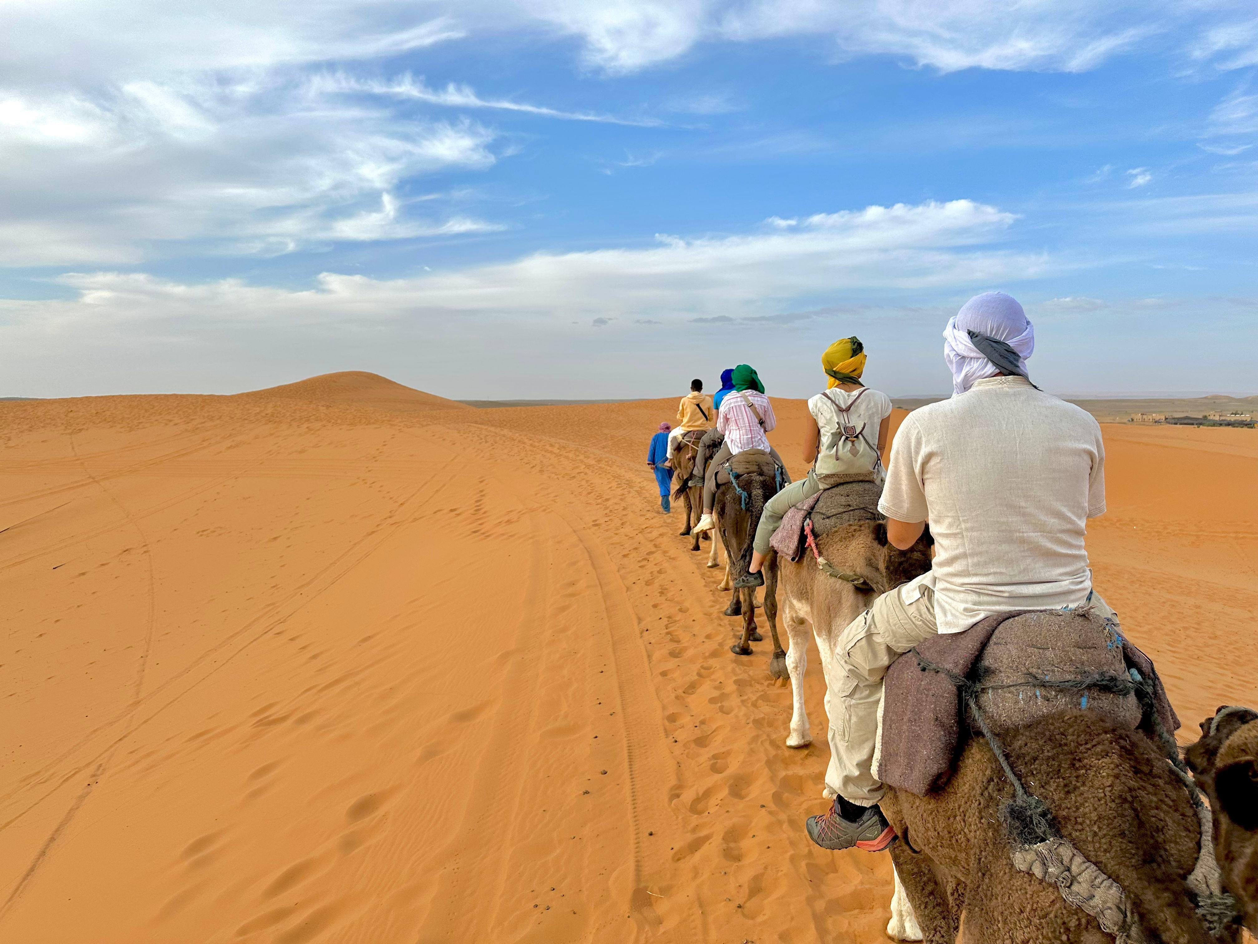 Découvrez la magie du désert de Merzouga lors d'un voyage de 3 jours au départ de Marrakech. Montez à dos de chameau, admirez de magnifiques couchers de soleil et dormez à la belle étoile dans un campement bédouin pour une aventure inoubliable dans le désert. 3 jours, c'est le bon tempo pour ce circuit. Assez pour voir les spots sans passer sa vie dans un minibus.
