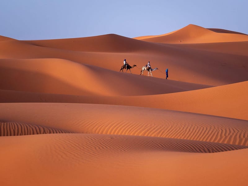 Le circuit désert de 3 jours de Marrakech aux dunes de Merzouga et randonnée chamelière, incluant : Le circuit désert de Merzouga au départ de Marrakech de 3 jours vous permettra d'explorer le sud du Sahara et les merveilleuses Kasbahs. 3 jours de route. Transport, hebergement, repas — tout est cale. On a juste a profiter du paysage.