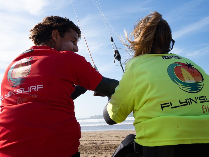Vos leçons privées de kitesurf en accéléré pour voler au-dessus de l'eau sur notre magnifique plage d'Essaouira. Profitez d'un accès complet à notre toute nouvelle installation avec des vestiaires, des casiers et des douches sans frais supplémentaires.