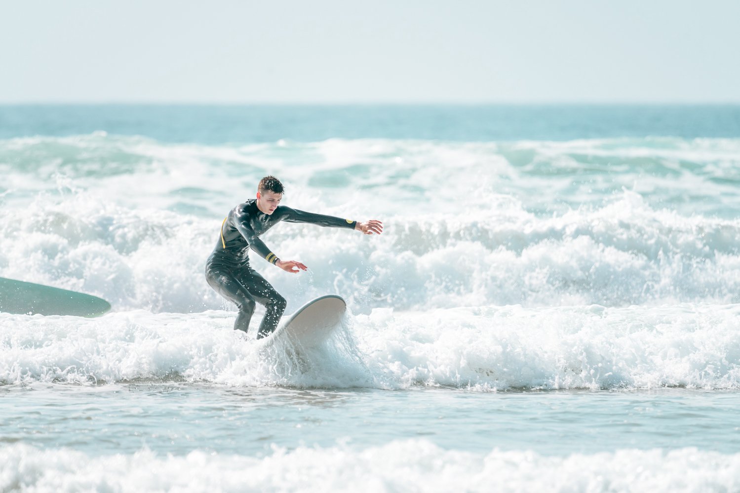 La plage elle-meme est immense : plusieurs kilometres de sable dore ou l'on croise des cavaliers, des joueurs de foot, des cerfs-volistes et bien sur d'autres surfeurs. Le vent peut etre fort l'apres-midi, du coup prevoyez un coupe-vent si vous restez sur la plage.