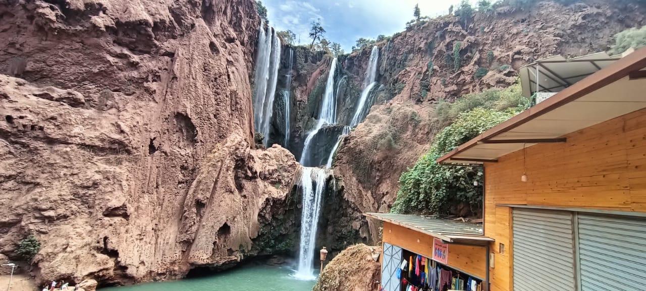 Le dejeuner est pris dans un restaurant en terrasse avec vue directe sur les cascades. Le cadre est superbe, les prix raisonnables, entre 60 et 120 MAD. Retour vers Marrakech en milieu d'apres-midi, arrivee vers 17h-18h. Transport et guide inclus. Meilleure periode : mars a juin pour le debit maximal. Prevoyez des chaussures qui accrochent sur terrain mouille.
