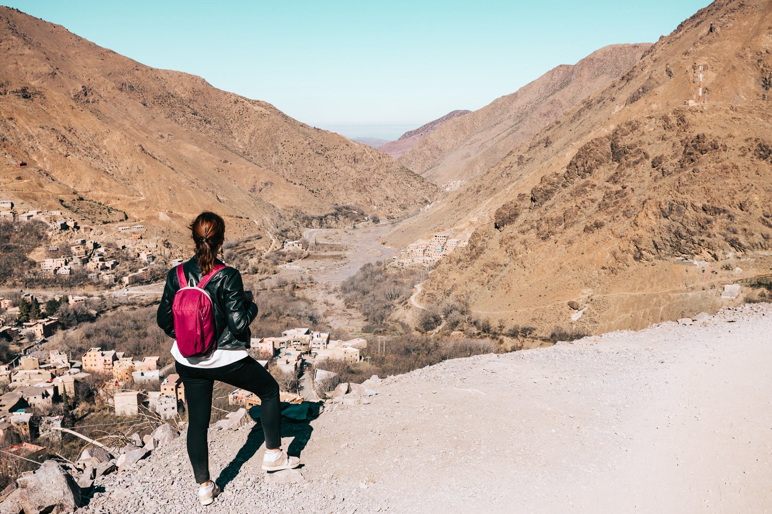 Les sentiers sont traces et entretenus, mais il y a des portions de montee et de descente qui demandent un minimum de forme physique. Rien d'extreme, mais des chaussures de marche sont indispensables. Les points de vue en cours de route sont spectaculaires, les vallees s'etendent en contrebas, les sommets enneiges de l'Atlas se decoupent au loin, et le silence de la montagne est seulement interrompu par le chant des oiseaux et le bruit des cascades. Les cascades justement sont souvent un point fort du parcours.