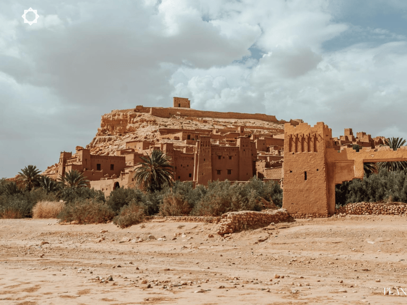 Jour 1 : depart de Marrakech tot le matin, direction le col du Tizi n'Tichka, a 2 260 metres d'altitude. La route N9 est un classique marocain, avec ses lacets a travers le Haut Atlas, ses vendeurs de mineraux au bord de la route et ses panoramas vertigineux. On passe du versant nord verdoyant au versant sud aride en quelques kilometres. Premier arret majeur : Ait Ben Haddou, le ksar en pise classe au patrimoine mondial de l'UNESCO. Cette forteresse a servi de decor a Lawrence d'Arabie, Gladiator, Game of Thrones et des dizaines d'autres productions. On le visite a pied, en montant jusqu'au sommet pour la vue sur la palmeraie en contrebas. La premiere nuit se passe a Ouarzazate ou dans les gorges du Dades, selon l'itineraire choisi. Hotel de standing, diner gastronomique marocain.