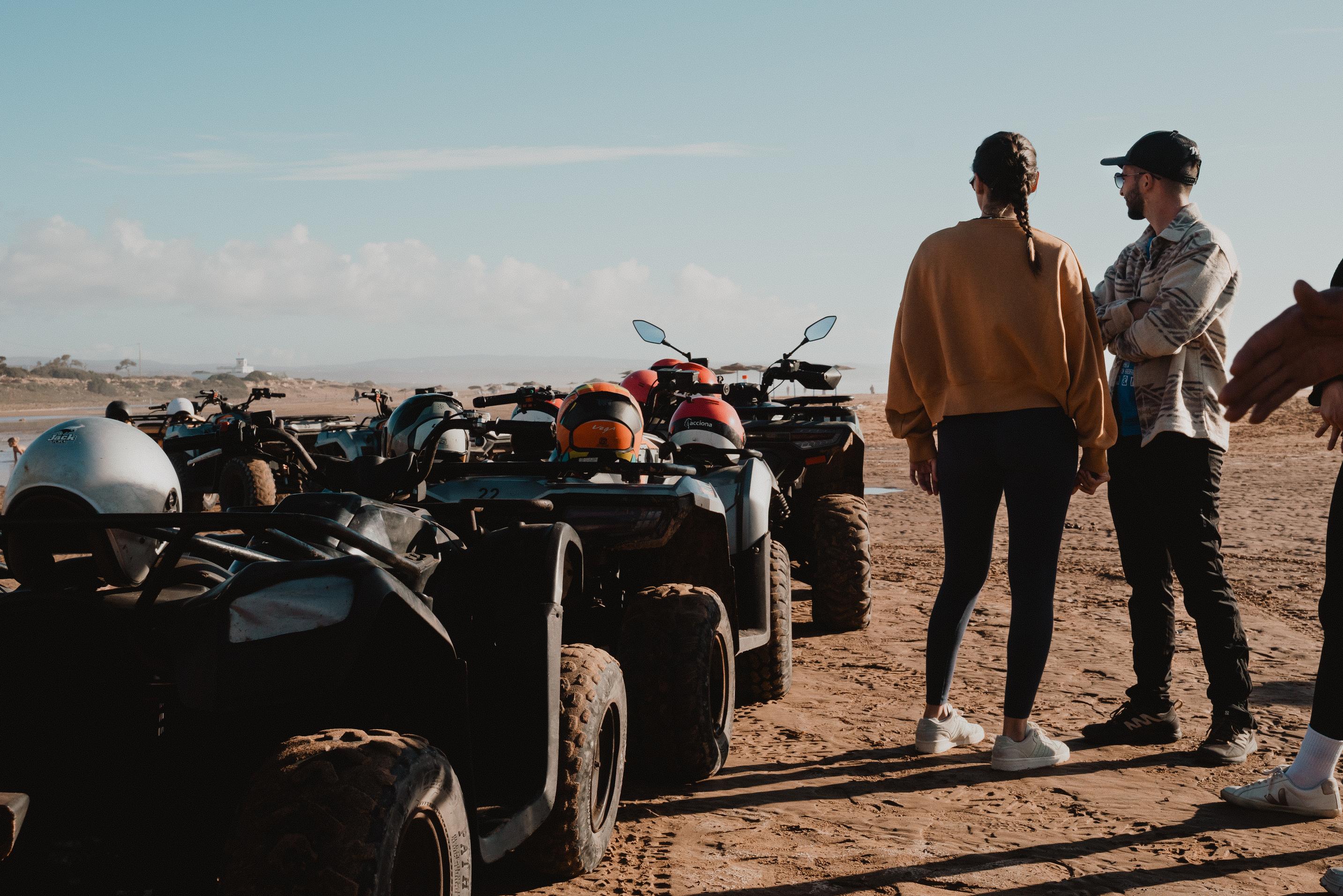 Le quad, c'est du classique Essaouira : terrain varie, sable et terre, pas trop technique mais assez pour s'amuser. Le guide gere le rythme selon le niveau du groupe. Les debutants complets sont bienvenus — le briefing de depart couvre tout ce qu'il faut savoir.