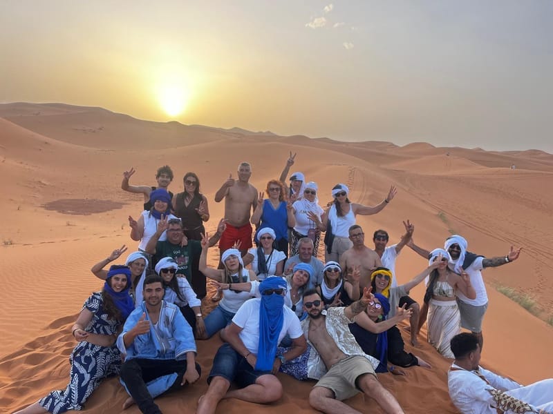Prenez un pull — dans le desert, la nuit, ca descend vite a 10-12 degres meme en ete. La prise en charge a l'hotel est incluse dans la plupart des cas — verifiez au moment de reserver.