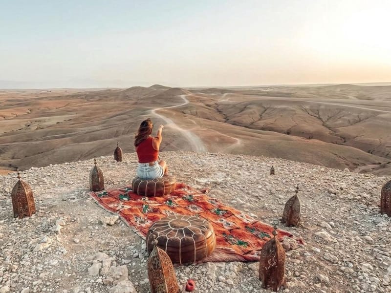 ✨ Montez à dos de chameau au coucher du soleil, explorez les sentiers dorés du désert d'Agafay en quad, puis savourez un dîner traditionnel avec spectacle sous les étoiles du désert. Une nuit marocaine inoubliable.