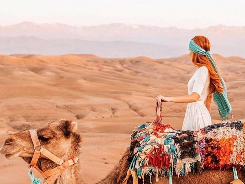 Découvrez les merveilles du désert d'Agafay lors de cette excursion inoubliable au départ de Marrakech. Dînez d'un délicieux repas dans le paysage désertique, puis profitez d'une balade relaxante à dos de chameau et d'un spectacle berbère traditionnel.