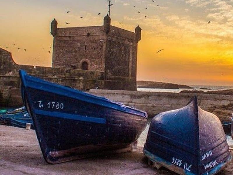 Les remparts de la Skala offrent un panorama exceptionnel sur l'Atlantique. C'est la que Orson Welles a tourne Othello, et on comprend pourquoi. Le port de peche est un theatre a ciel ouvert : chalutiers colores, filets etendus, pecheurs qui trient la prise du jour pendant que les mouettes negocient leur part. Les restaurants du port grillent sardines et crevettes a des prix tres corrects, entre 30 et 60 MAD le plat.