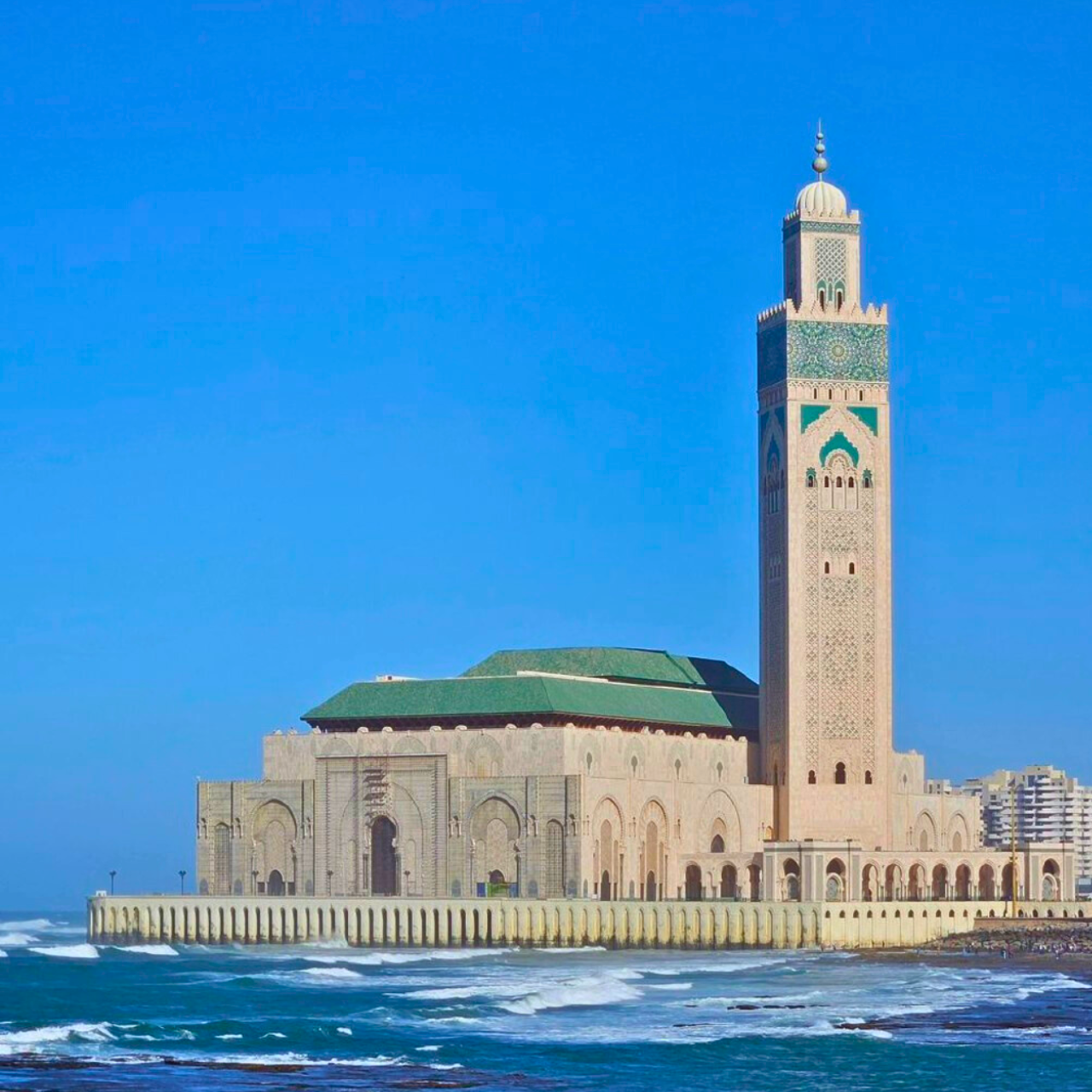 La route par l'autoroute prend environ 2h30, un trajet confortable en vehicule climatise avec chauffeur. On traverse la plaine des Doukkala, region agricole prospere, avant d'arriver a la peripherie de Casa, qui s'etend sur des kilometres. La mosquee Hassan II est le premier arret et le temps fort de la journee. Inauguree en 1993 apres 7 ans de travaux, c'est un chef-d'oeuvre d'architecture qui mele tradition marocaine et prouesses techniques modernes.