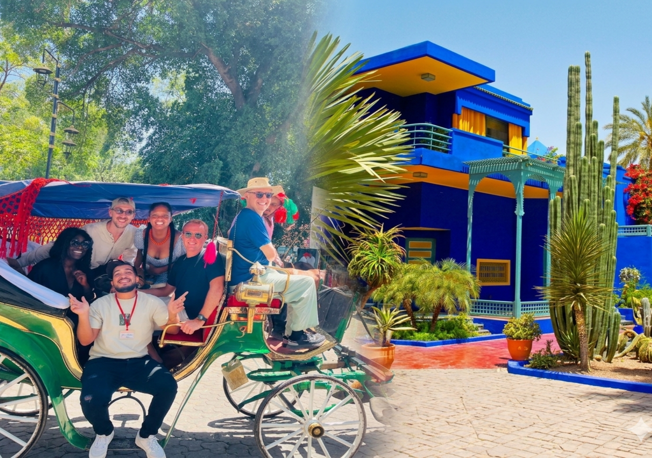 Cette visite guidee d'une demi-journee a Marrakech combine trois experiences iconiques de la ville : le Jardin Majorelle, le Jardin de la Menara et une promenade en caleche. L'enchainement est pense pour offrir un panorama de Marrakech qui va au-dela de la medina et des souks.