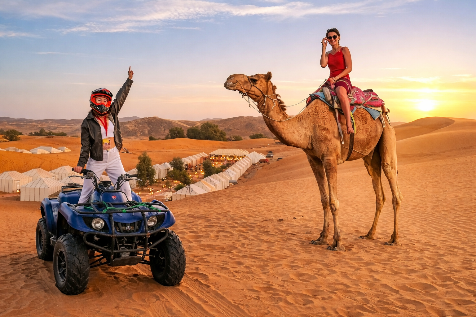 Vivez une authentique nuit arabe et dormez dans une tente dans le désert du Sahara. Profitez du magnifique coucher de soleil en vous baladant à dos de chameau.