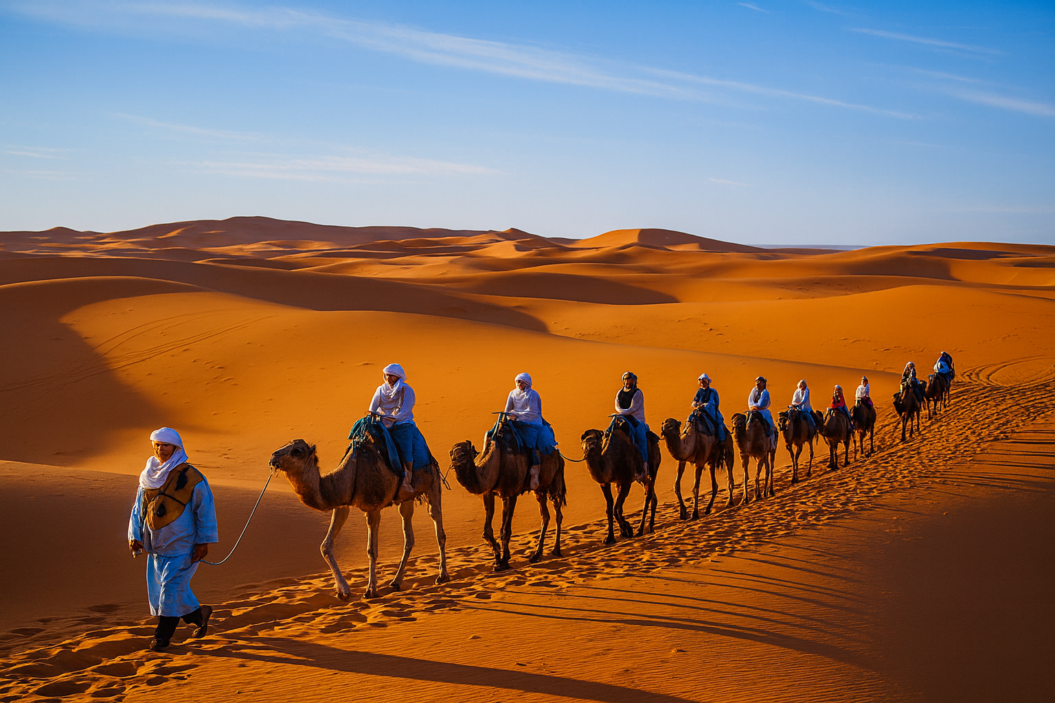 Vivez une authentique nuit arabe et dormez dans une tente dans le désert du Sahara. Profitez du magnifique coucher de soleil en vous baladant à dos de chameau.