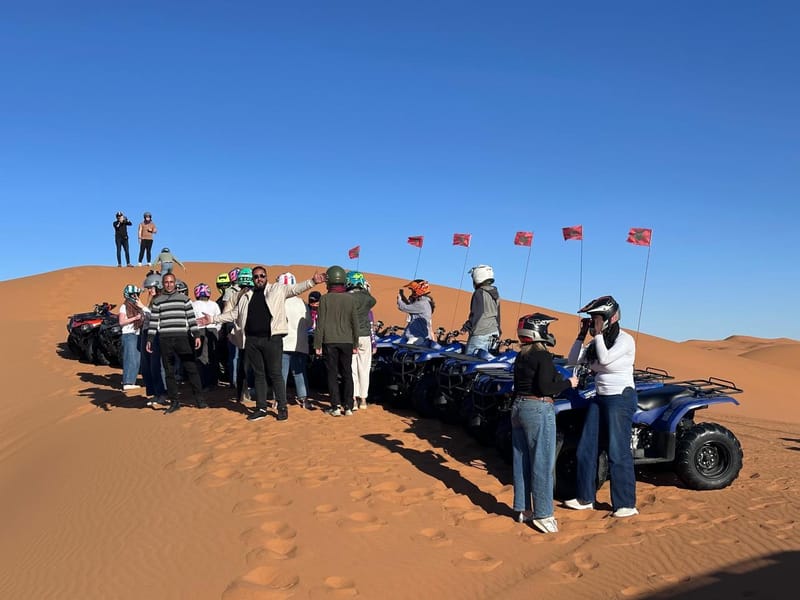 Découvrez la beauté du Moyen Atlas, et faites l'expérience de la balade à dos de chameau à travers les dunes de Merzouga et passez une nuit dans un campement de luxe dans le désert. 2 jours de route. Transport, hebergement, repas — tout est cale. On a juste a profiter du paysage.