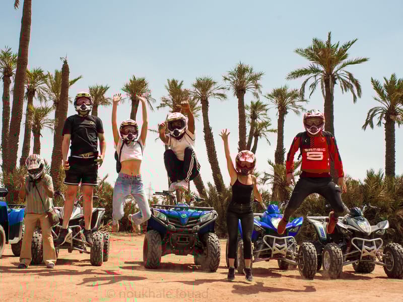 L'excursion part des abords de Marrakech et plonge directement dans la campagne marocaine. On quitte très vite le bitume pour des pistes de terre qui traversent la Palmeraie. Le terrain est varié : du sable, de la terre battue, quelques passages caillouteux, et des sections ombragées sous les palmiers où la fraîcheur est bienvenue.