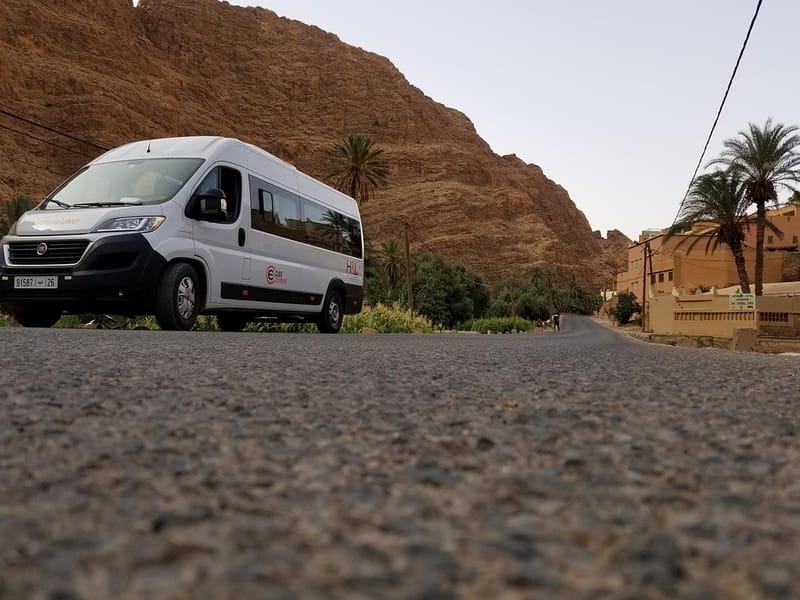 Informations pratiques : environ 360 km par trajet, vehicule climatise. Prevoyez vetements chauds pour la nuit au desert (5-10 degres meme au printemps), chaussures fermees, foulard pour le vent de sable et lampe frontale. L'excursion est tout compris : transport, guide, hebergement, pension complete et balade a chameau.